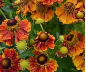 Многолетнее растение. Стебли прямые, ветвистые, до 160см высотой, крепкие, облиственные. Листья некрупные, сидячие, с мелкозубчатым краем. Корзинки до 4,5 см в диаметре; язычковые цветки шарлахово-красные с коричневым оттенком, по краям желтоватые, к центру почти красные, трубчатые - желтые с коричневым оттенком. Цветет обильно с августа 45-50 дней.